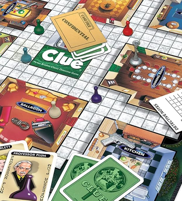 A classic game of who-done-it. Grab your detective notebook and pen and join all the usual suspects in the Clue mansion to try to solve the murder of poor Mr. Boddy. Was it Professor Plum, Mrs. White, Mr. Green, Mrs. Peacock, Miss Scarlett, or Colonel Mustard? In which of the nine rooms did it happen? What weapon did they use? Roll the die and move around the mansion to gather clues, ruling out the potential culprits. All will be revealed when the confidential case file is opened. The only question is who will solve the latest murder mystery first and win? For 3-6 players.