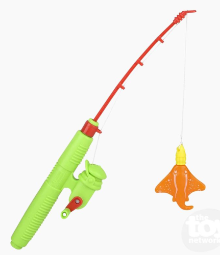 This 15 1/2" magnetic fishing rod with retractable fishing line makes a ratchet sound.