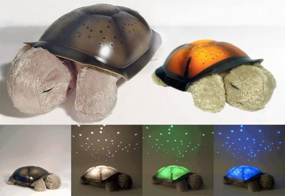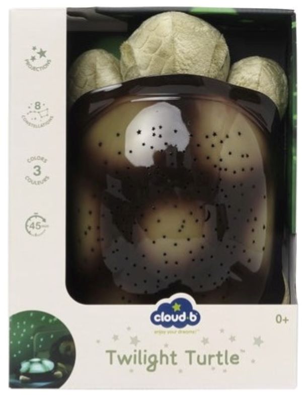 Fall asleep under the stars! Twilight Turtle is 3 in 1: a soft bedtime companion, a soothing nightlight, and an educational planetarium. From within his plastic shell, Twilight Turtle projects a starry night sky onto a child's bedroom ceiling in one of three colors and intensities: green, blue, and amber. Find and identify 8 major constellations using the Star Guide. 3 AAA batteries included. For ages 3-7 years.