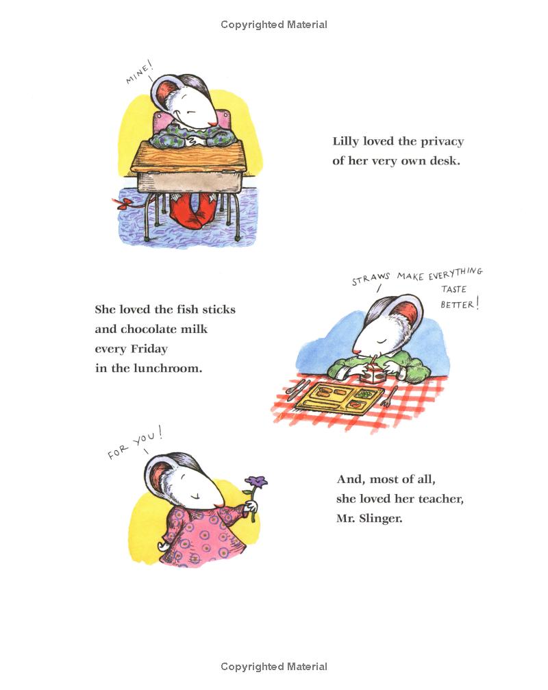 Lilly loves all sorts of things. She loves school, she loves dressing up, she even grows to love her stinky baby brother, Julius. In fact, Lilly loves everything! But when Lilly brings her purple plastic purse to school and can't wait until sharing time to show off the purse and her movie star sunglasses, her teacher, Mr. Slinger, has to take away her prized possessions.