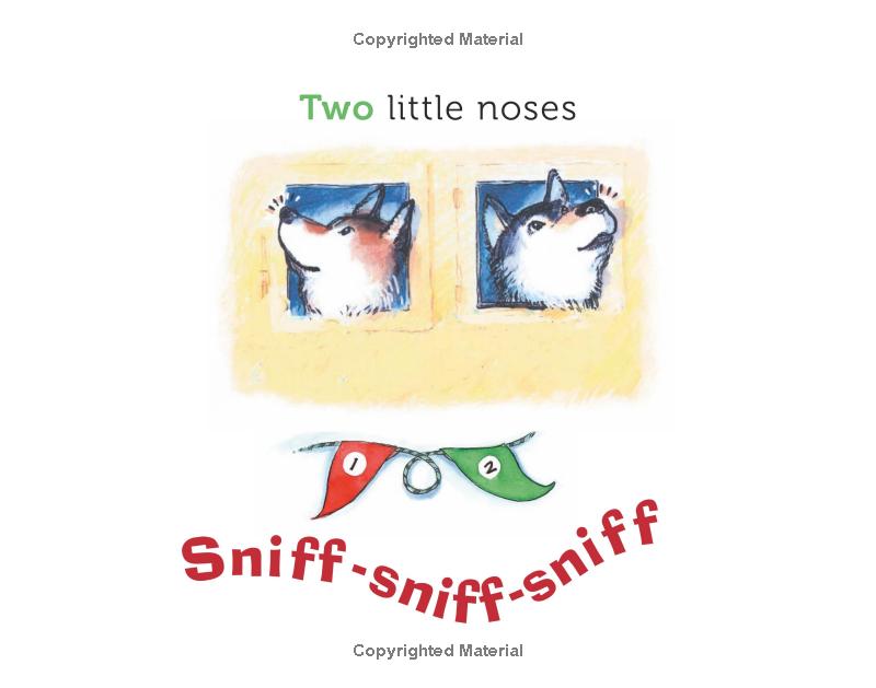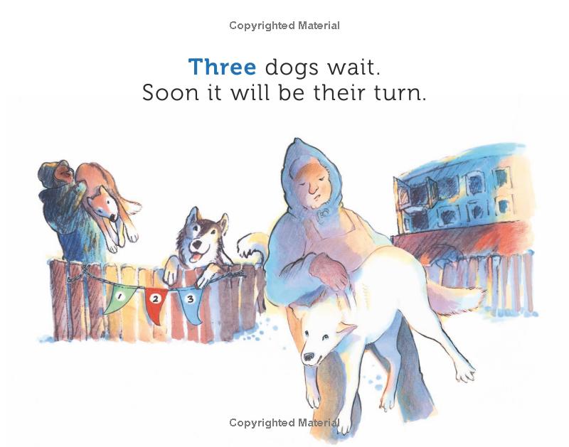OK kiddies, today we're going to learn about sled dogs and mushing! In this delightful and energetic counting book, the story centers on preparing a sled dog team for a race. Children count paws, ears, and noses as the dogs eagerly await the starting gun. A sled dog glossary helps little ones learn mushing terminology, the parts of the rigging, and sled dog facts. The cheerful text is excellent for reading aloud and makes for a wonderful way to get children excited about counting. Michael Bania's charming illustrations exude the happy canine enthusiasm for which Alaskan huskies are known.