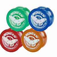 A Duncan favorite for over 60 years, the Butterfly Yo-Yo offers a wide shape that makes landing the yo-yo on the string much easier. It features a flared shape, steel axle and durable plastic body that can withstand impact. It's great for learning the basics of yo-yoing!