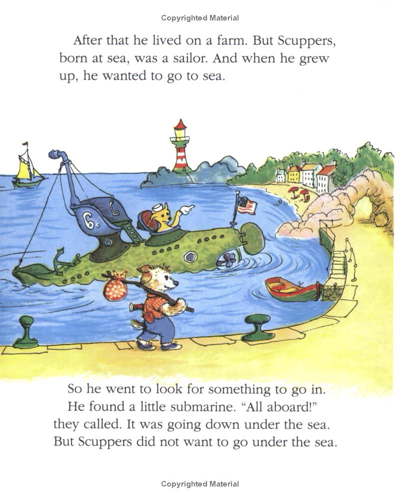 Scuppers the Dog wants to be a sailor. He was born at sea and he wants nothing more than to return to water. Finally, after a long time, Scuppers gets the chance to go out into the deep blue ocean—but his ship gets wrecked! Oh no! But Scuppers won’t let that bother him. He fixes his boat and gets right back to it!