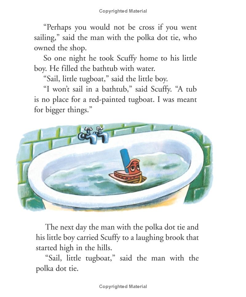 Meant for "bigger things," Scuffy the Tugboat leaves the man with the polka-dot tie and his little boy and sets off to explore the world. But on his daring adventure down the river, Scuffy realizes that home is where he'd rather be, sailing in his bathtub. Generations of parents and children have cherished this classic Little Golden Book, originally published in 1946.