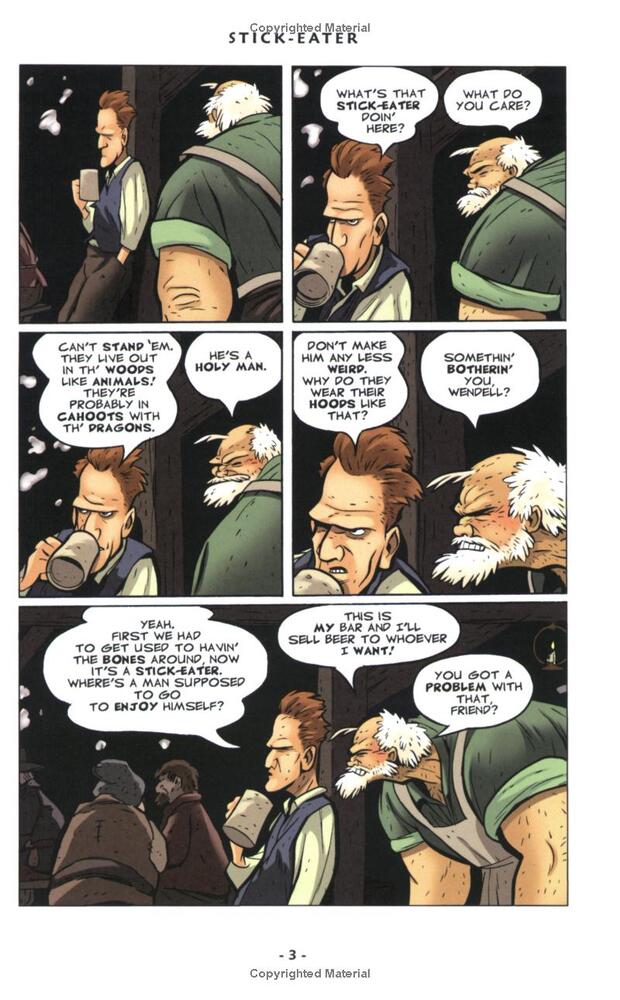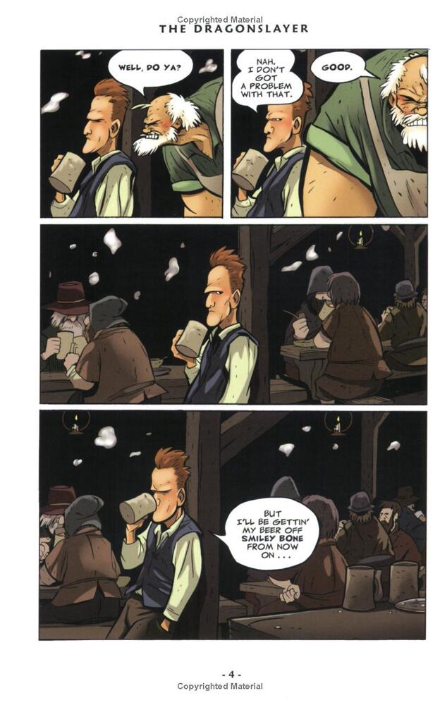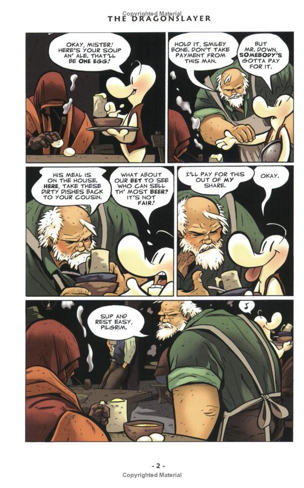 Fone Bone confronts a host of dangers in Book 4 of the BONE saga, the Dragonslayer. He and Gran'ma Ben and Thorn have a terrifying encounter with Kingdok, ruler of the rat creatures. The Hooded One is inciting his army to full-scale war. Someone is continuing to haunt Thorn in her dreams. And then wise Gran'ma Ben disappears. To make matters worse, Phoney Bone has hoodwinked the townspeople into believing that he is a mighty dragonslayer. When he actually does catch the Red Dragon - much to his surprise - he must face up to his promise: To slay the dragon at sunrise.