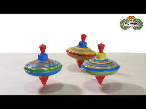 Spin the top and listen to them hum! These colorful tin tops are fun for everyone! Measures 5.5" x 5.5" x 5.5" Ages 3 & up. WARNING: CHOKING HAZARD-Small parts. Not for children under 3 years. SOLD INDIVIDUALLY