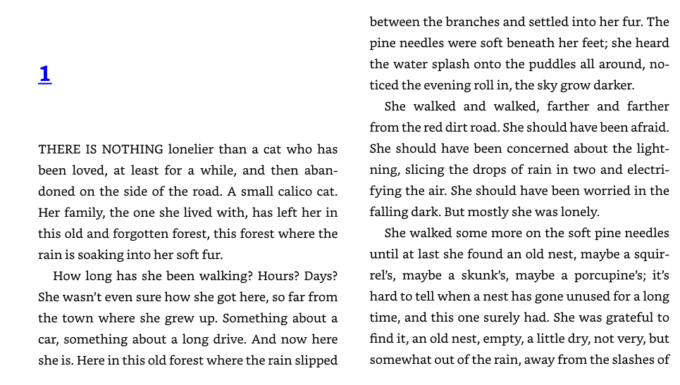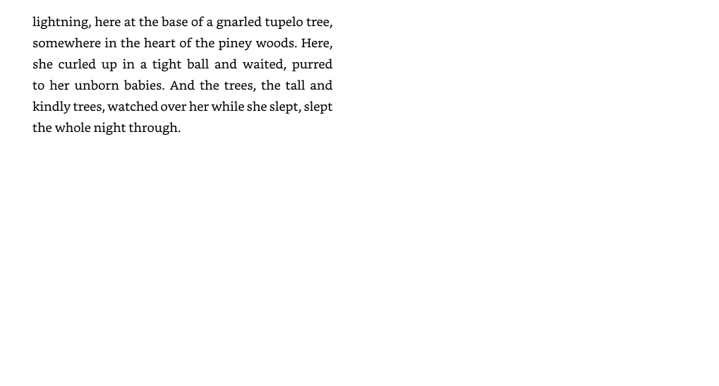 A calico cat, about to have kittens, hears the lonely howl of a chained-up hound deep in the backwaters of the bayou. She dares to find him in the forest, and the hound dares to befriend this cat, this feline, this creature he is supposed to hate. They are an unlikely pair, about to become an unlikely family. Ranger urges the cat to hide underneath the porch, to raise her kittens there because Gar-Face, the man living inside the house, will surely use them as alligator bait should he find them. But they are safe in the Underneath...as long as they stay in the Underneath.