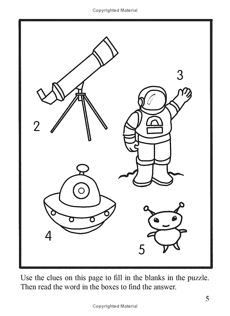 Step into your space suit — and blast off to a galaxy of entertainment! This constellation of 39 activities ranges from word games and rebus puzzles to mazes and connect the dots. Can you count the flying saucers? Guide the shuttle back to earth? Spot the differences between astronauts? The adventure starts here!
