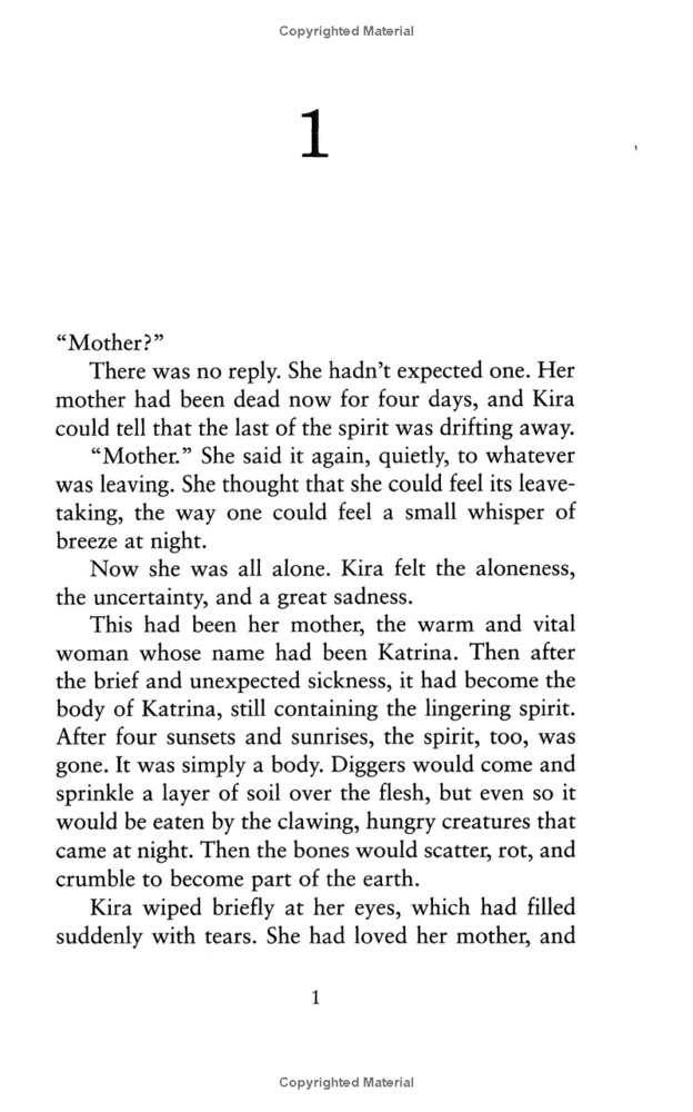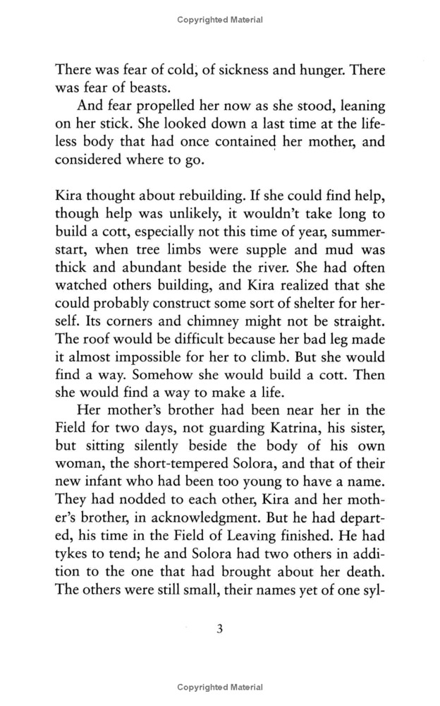 The second book in Lois Lowry'sGiver Quartet tells the story of Kira, orphaned, physically flawed, and left with an uncertain future.