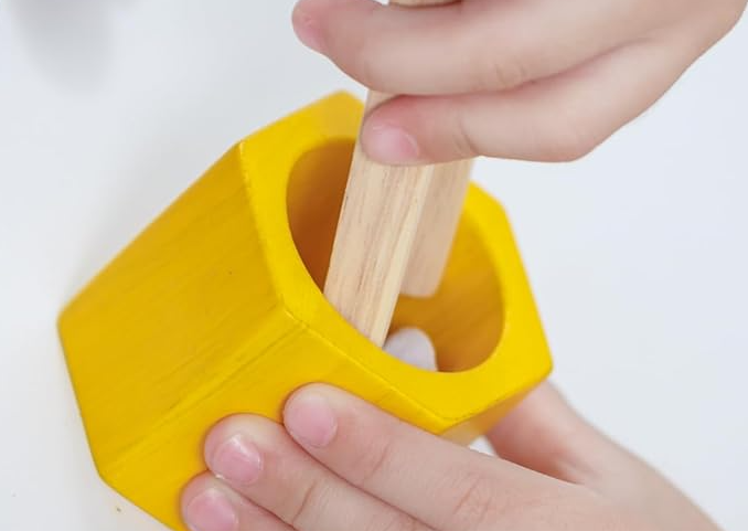 Help develop fine motor skills by matching the bee to its hive using the pincer grasp or the forceps. It also reinforces color recognition and counting.
