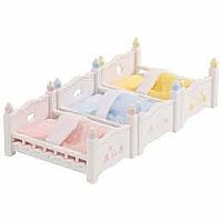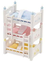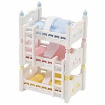 Calico babies love their cozy beds! Beds can be positioned in 3 fun ways. Stack them like bunk beds, arrange them like a pyramid, or simply use them as 3 separate beds. Complete with mattresses/pillows, blankets & 2 climbing ladders.