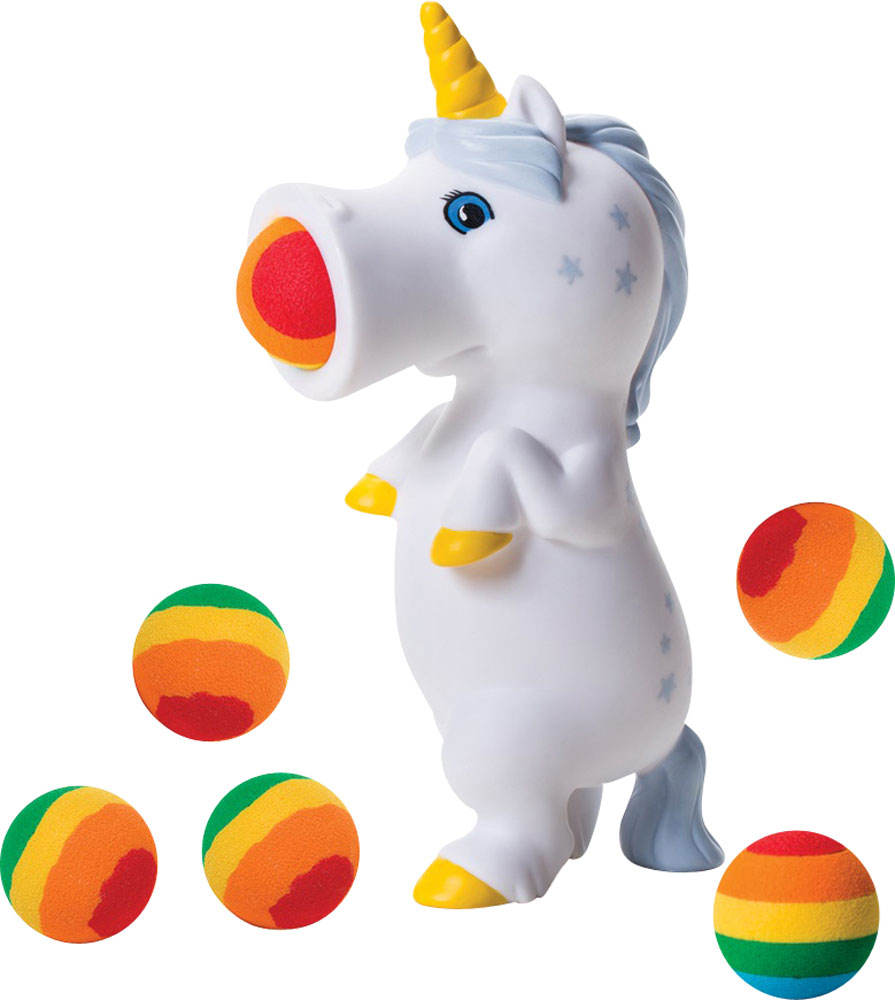 Just squeeze the unicorn’s belly to launch the soft foam balls. The harder you squeeze, the farther it shoots - up to 20ft! Popper is air powered and safe for both indoor and outdoor play. Includes 6 soft foam balls and convenient carrying net. From Hog Wild Toys, for ages 4-12 yrs.
