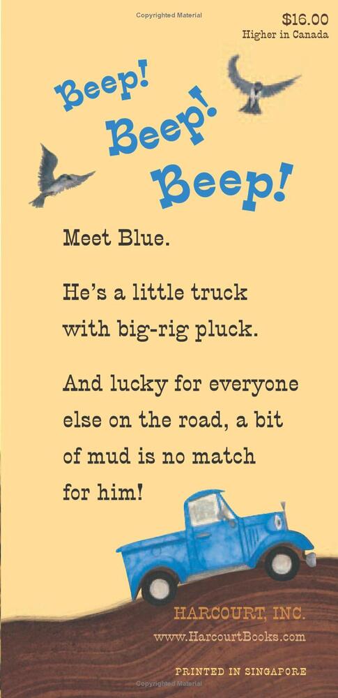 Beep! Beep! Beep! Meet Blue. A muddy country road is no match for this little pick up--that is, until he gets stuck while pushing a dump truck out of the muck. Luckily, Blue has made a pack of farm animal friends along his route. And they're willing to whatever it takes to get their pal back on the road.