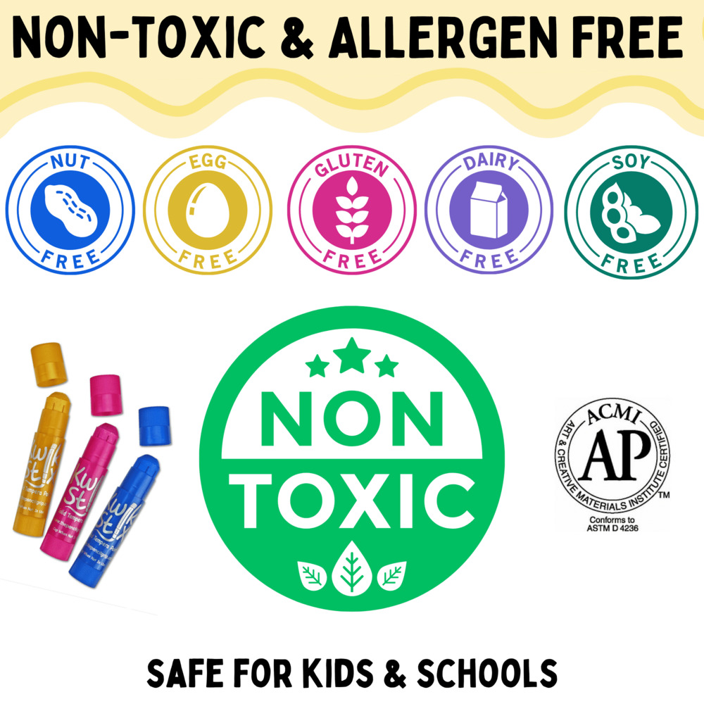 Uncap, twist and paint with these non-toxic tempera paint sticks. No water needed, just glide onto paper, poster board, even wood. Artwork dries in 90 seconds, and cleanup is a breeze. From Pencil Grip Inc., ages 3-10 yrs.