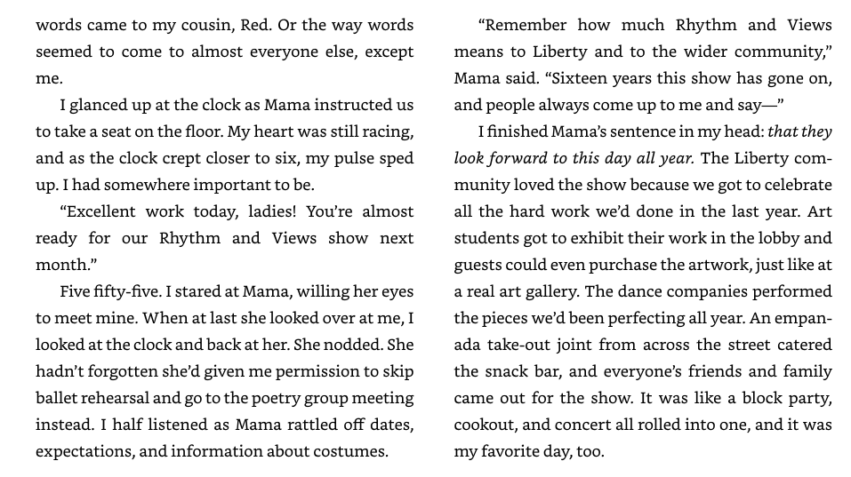 Get to know American Girl's 2017 Girl of the Year, Gabriela, in this first book in her series! Gabby loves expressing herself--especially in the dance studio--but lately, poetry is becoming her art form of choice, and for good reason: Gabby struggles with stuttering, and spoken word poetry helps her speech flow more freely. Still, compared to how confident she feels on the dance floor, speaking up can be scary. When the city threatens to close her beloved community arts center, Gabby is determined to find a way to help. Can she harness the power of her words and rally her community to save Liberty Arts?