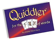 Quiddler, is a beautiful word game with naturally smooth gameplay that plays fast. These are essentials for a successful game that few word games have. Using special cards, Quiddler draws on one's ability to combine letters into words. Players must combine their entire hand into words trying to use the highest point value letters. Quiddler challenges you to do this first with three cards (round one), then with four, on up to ten cards in the last round. A bonus is given for both the longest word, and the most words made by a player in each round. The average game takes 20-40 minutes.
