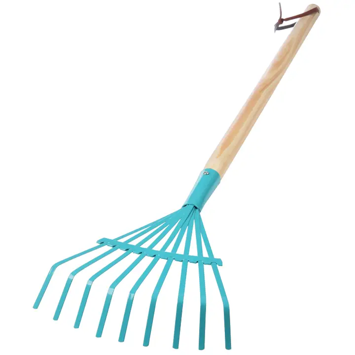 Garden is great for boys and girls ages 5+. Available in light blue, each kid-sized leaf rake features a metal head and easy-to-hold wooden handle. A 1-inch-long leather loop at the end also makes this easy to display in store and for kids to hang up at home when not in use.