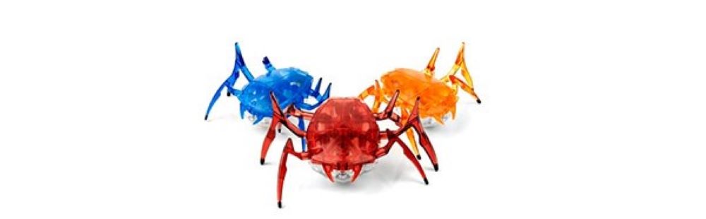 The high energy HEXBUG Scarab propels itself forwards and backwards, and is capable of popping from its back to its feet if placed upside down. The combination of the Scarab's six specially designed angular legs, coupled with its lightning speed, make it easy for it to scurry away from obstacles in its path and flip over if caught on its back. This bug is filled with robotic intelligence, and protected by a hard, transparent exoskeleton casing. HEXBUG Scarab is compliant with CPSIA standards. Ages 8+