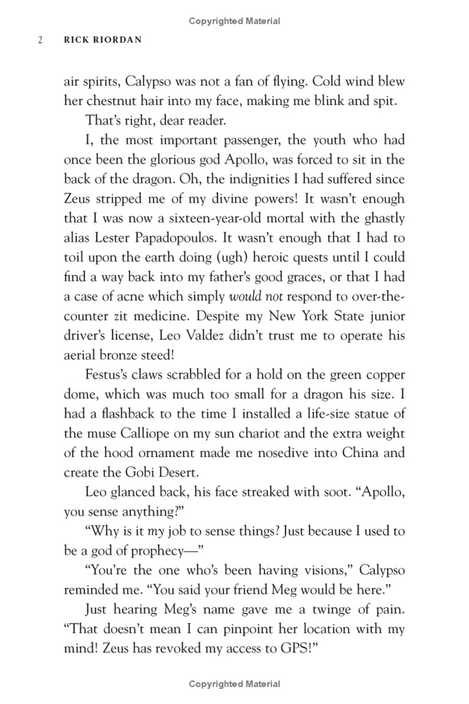 After experiencing a series of dangerous--and frankly, humiliating--trials at Camp Half-Blood, Lester must now leave the relative safety of the demigod training ground and embark on a hair-raising journey across North America. Somewhere in the American Midwest, he and his companions must find the most dangerous Oracle from ancient times: a haunted cave that may hold answers for Apollo in his quest to become a god again--if it doesn't kill him or drive him insane first. Standing in Apollo's way is the second member of the evil Triumvirate, a Roman emperor whose love of bloodshed and spectacle makes even Nero look tame. To survive the encounter, Apollo will need the help of son of Hephaestus Leo Valdez, the now-mortal sorceress Calypso, the bronze dragon Festus, and other unexpected allies--some familiar, some new--from the world of demigods. Come along for what promises to be a harrowing, hilarious, and haiku-filled ride. . . .