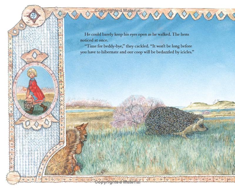Snow is on the way, and as Hedgie trundles around the farm all his friends tell him of the winter-time fun he will miss as he hibernates--Icicles decorating the chicken coop! Lisa making snowmen! The pond turned to slippery ice! It sounds so amazing, Hedgie decides to stay awake instead of going to his burrow. But then a snowstorm starts. Luckily, Lisa finds him and brings him inside so Hedgie gets to see the wonders of winter from inside the cozy house.