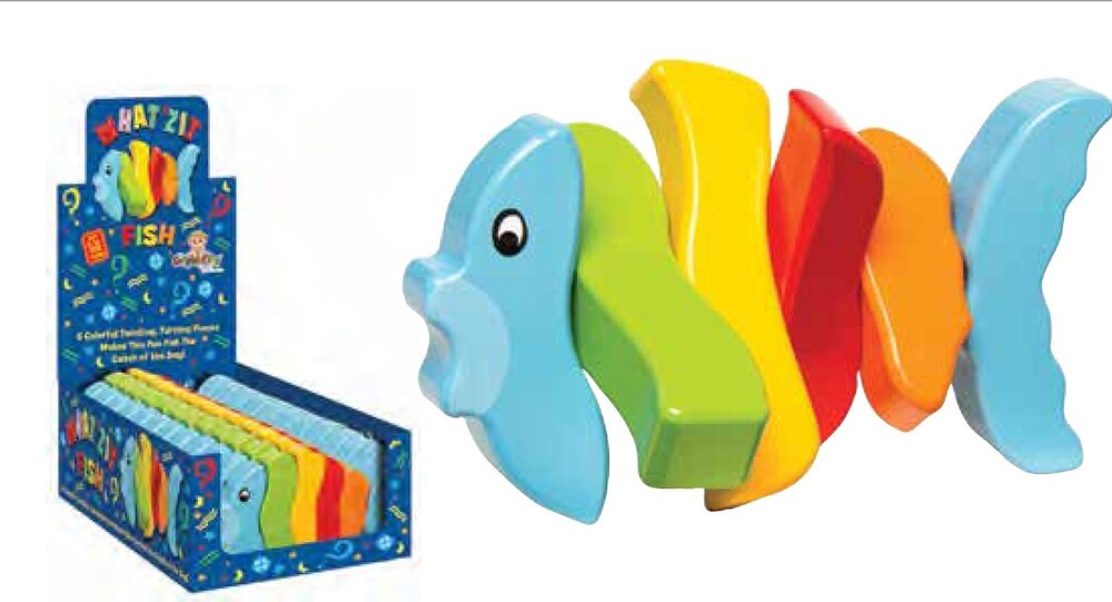This multi colored fish can be moved into endless configurations. Elastic movable fish, with wooden body. Will keep fingers moving and playing while turning the fins.