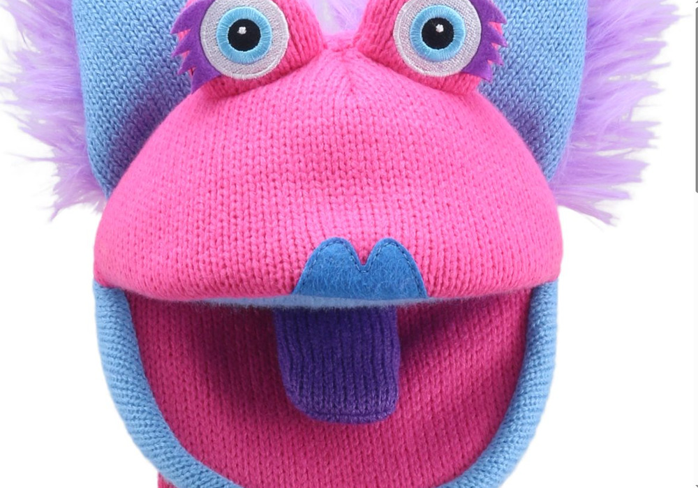 A fabulous, fun, Knitted Puppets with a squeaker in his tongue is sure to get the conversation started!