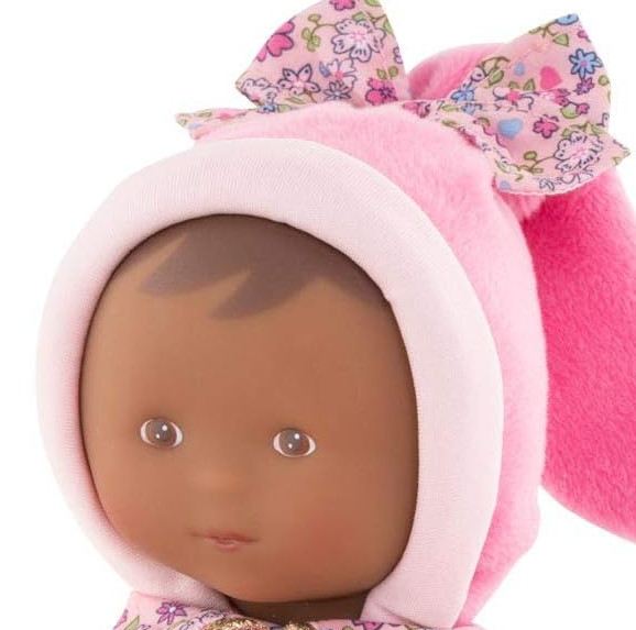 She's perfectly sized (9.8" tall) for tiny hands to grasp and hold by her stocking cap, hat, arms, legs, even her dress and is made of ultra-soft fabric that makes her very cuddly. Her sweet, realistic vinyl face charms and comforts baby and is delicately scented with vanilla, a Corolle signature.