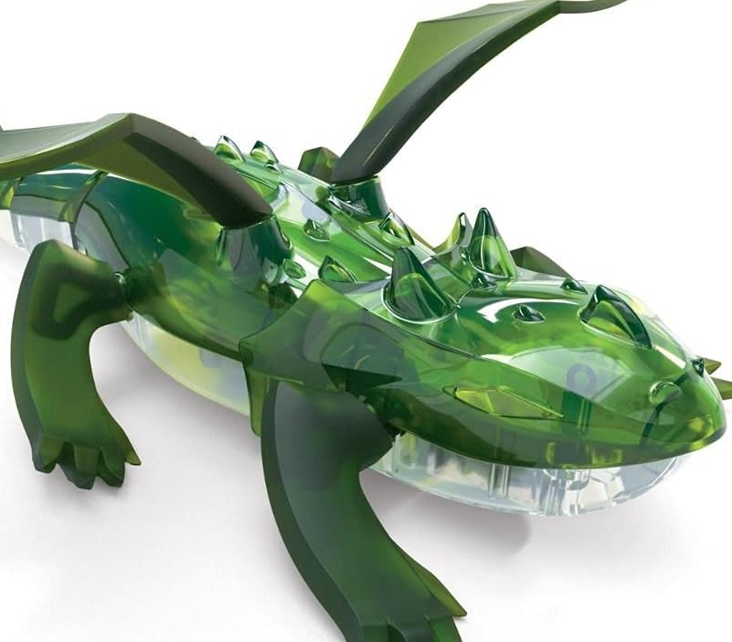 The HEXBUG Dragon has risen from the fires of myth and legend! Watch as it slithers across any surface breathing LED lit fires and roaring ferociously at all who dare to come close. Using a powerful remote control, you decide the Dragon’s every move! With rubber rotating paws for traction, fearsome adjustable wings and a flexible tail moving from side to side, your friends just might think this robotic creature is alive!