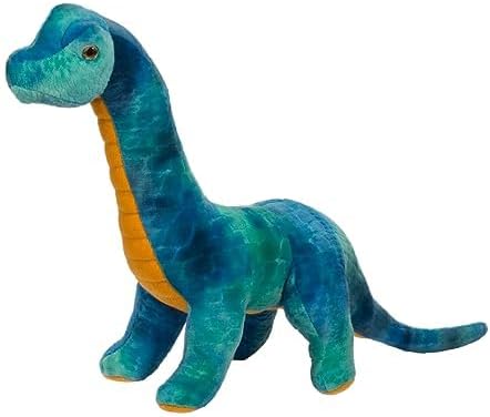 This famous long-necked dinosaur has thrilled dinosaur lovers for over a hundred years! Capture Brach the plush Brachiosaurus for yourself and become the inventor of your own prehistoric adventures! Brach features mottled blue fabric with an exciting, scaly texture, while the undersides of his neck and feet are accented with a golden, yellow material. Our playful dino’s bright, expressive eyes lend him a lifelike quality that will inspire the imagination. Stuffed with resilient polyester fill, Brach is ready for hours of rough and tumble play but is soft enough for cuddles at the end of the day. Undeniably, one of the world’s most famous sauropods, no dinosaur collection is complete without Brach the Brachiosaurus stuffed animal!