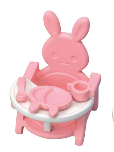 Features nursery accessories including rocking cradle with matching blankets, highchairs and feeding accessories