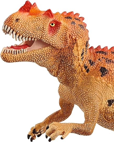 The Ceratosaurus from Schleich® DINOSAURS has three prominent bumps on its head. Blade-shaped teeth line its movable jaw.