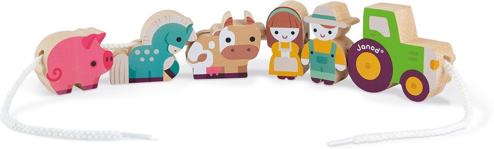 TEACH YOUR PRESCHOOL CHILD THE POWER OF IMAGINATION - Discover the fun of. the barnyard with these wooden farm character beads. Set includes 1 tractor, 2 farmers, a horse, goat, chicken, pig, dog, duck, sheep and cow.