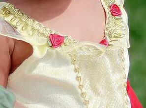 Get your little one ready to dance the night away in their own fairytale with this classically designed ballgown. The stretchy yellow velvet bodice is gracefully designed with sparkling gold trim and an elegant collar adorned with red rose accents. The printed gold rose overskirt adds a dash of dazzle to the princess in you.