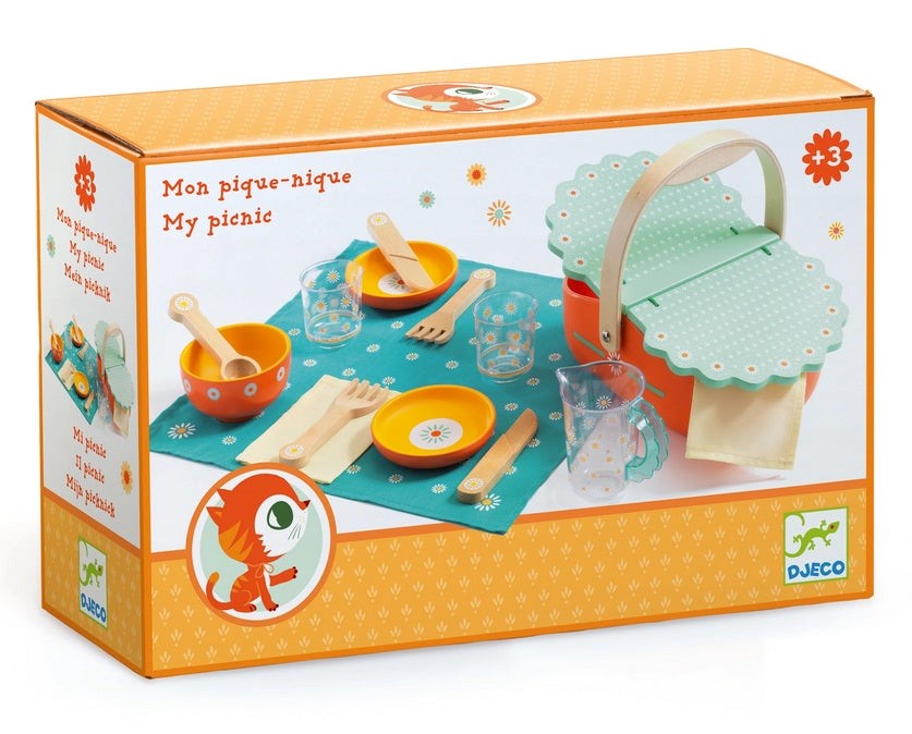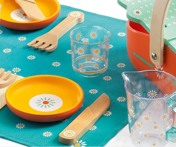 1 picnic basket, 2 forks, 2 knives,