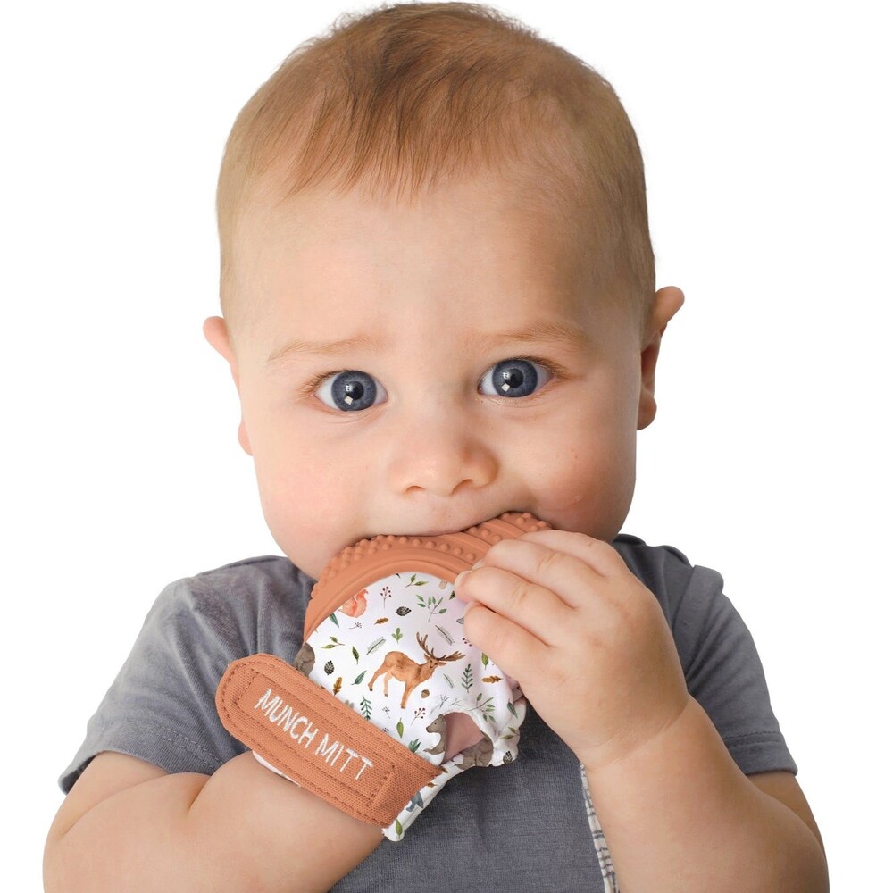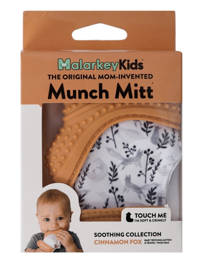 The Munch Mitt is the original, mom-created teething mitten that babies love. A ‘handy’ solution for infants of all ages and sizes, the Munch Mitt provides relief from teething pain in a safe, easy-to-clean product that goes wherever they do. Suggested age range 3-7 months.
