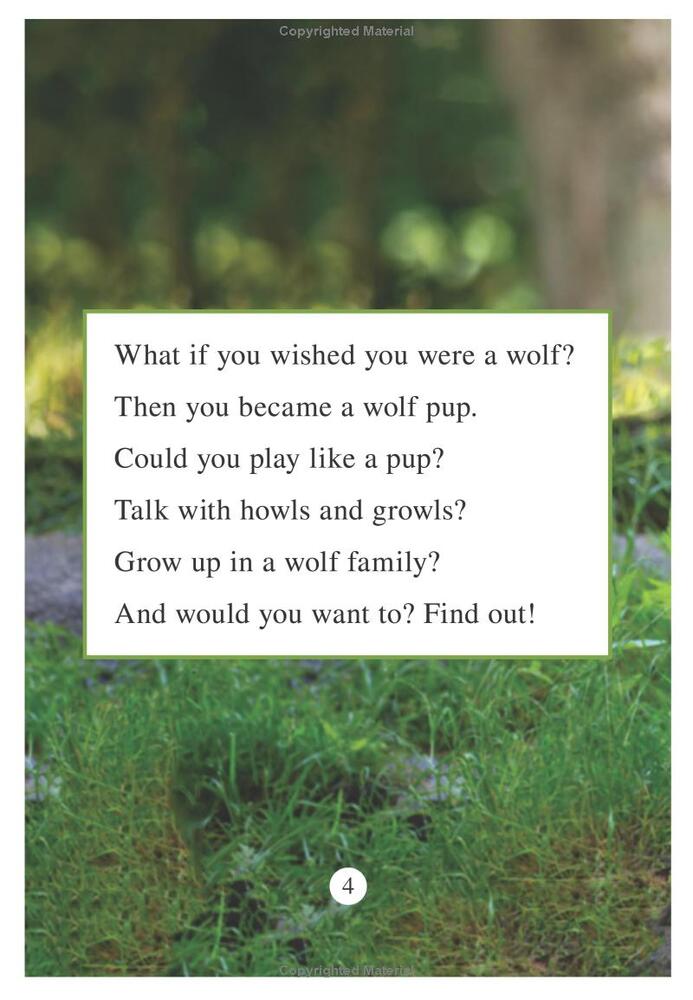 What if you wished you were a wolf and then you became a gray wolf pup? Could you play like a pup? Talk with howls and growls? Live with a wolf pack? And would you want to? Find out!