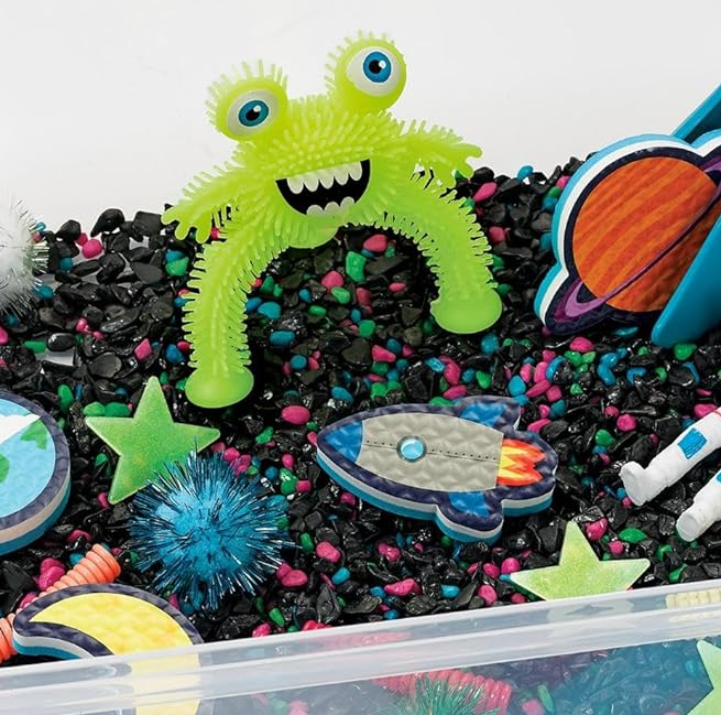 Foster imaginative play with the Outer Space Sensory Bin. This self-contained play bin is the ultimate sensory experience.