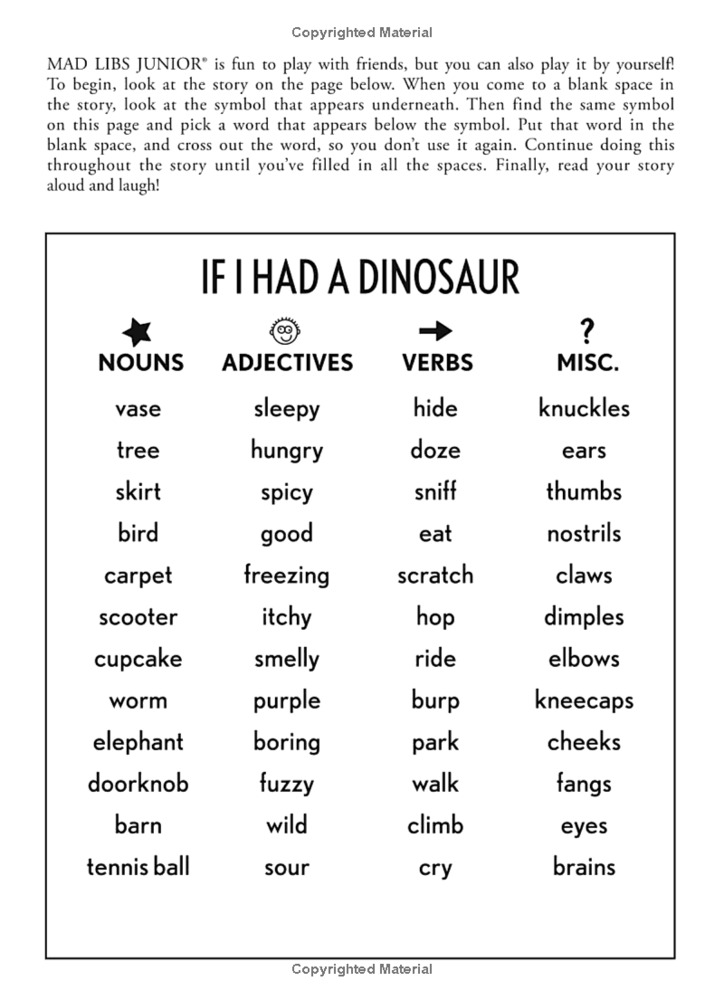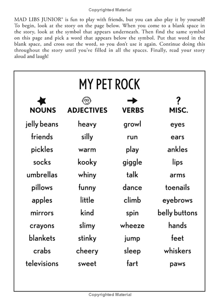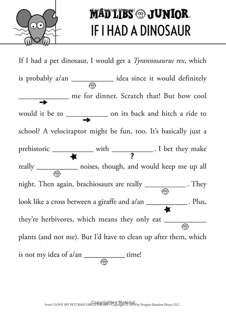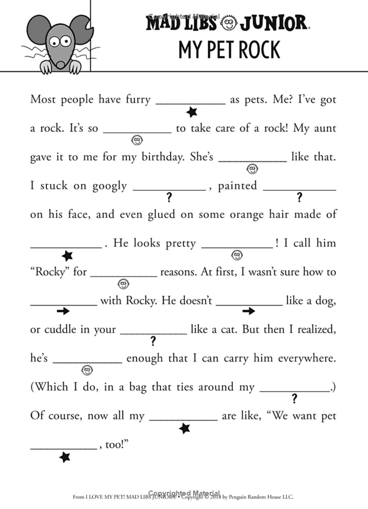 A Mad Libs Junior with stories about pet cats, dogs, parakeets, lizards...you name it!
