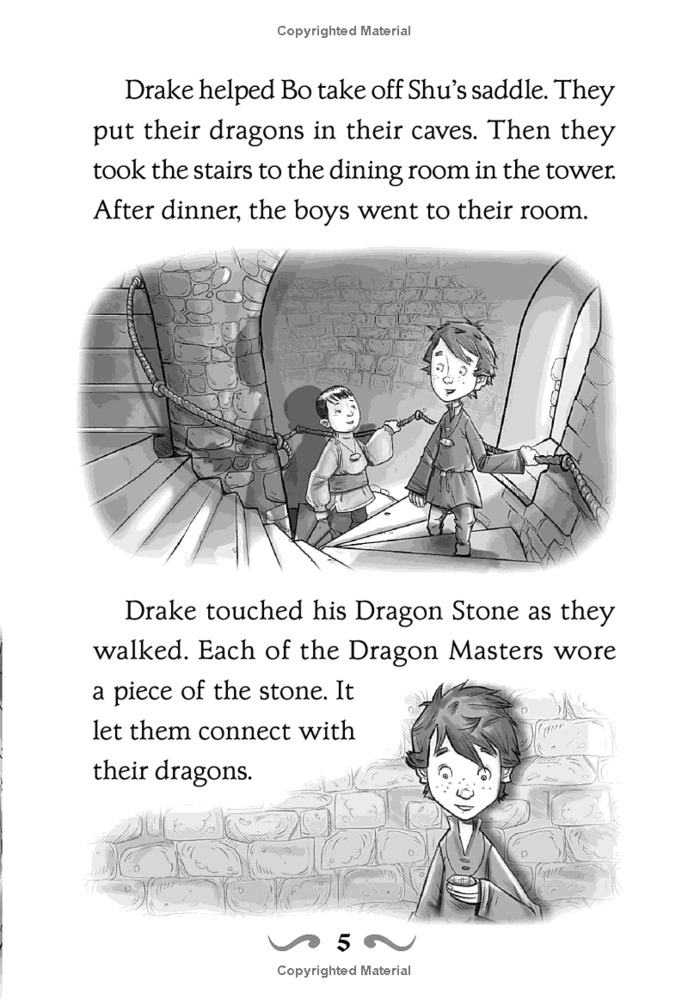 This series is part of Scholastic's early chapter book line called Branches, which is aimed at newly independent readers. With easy-to-read text, high-interest content, fast-paced plots, and illustrations on every page, these books will boost reading confidence and stamina. Branches books help readers grow! In this third book in the series, someone is trying to steal the Dragon Stone. Drake soon discovers that the thief is his friend and fellow Dragon Master, Bo! Could the dark wizard somehow be behind this? The Dragon Masters must find a way to protect the Dragon Stone--and keep Bo's family out of danger. Will the secret to solving their problems lie with Bo's dragon, Shu? Drake is about to find out!