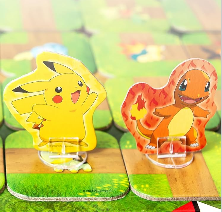 Play as Pikachu, Bulbasaur, Charmander, or Squirtle as you look for other Pokémon in a moving maze! On your turn, you'll shift the maze and move along the path, trying to get to the Pokémon on your cards while blocking your opponents. Be the first to find all your Pokémon and make it back to your starting place to win!