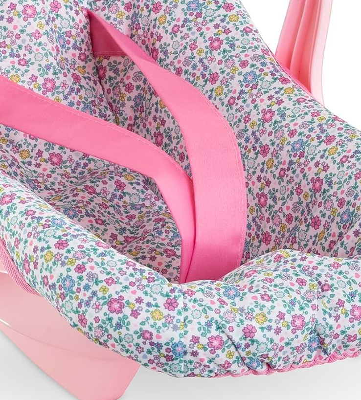Ideal for make-believe moms and dads on the go, Corolle's Floral Baby Doll Carrier comfortably fits a 14- to 17-inch Corolle baby doll. Lightweight yet sturdy and styled like those for real babies, it features security straps and a handle that adjusts to three different positions to carry, gently rock, or keep baby doll seated.