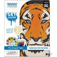 The Abstract Athlete Get Stacked paint and puzzle kits challenge you to create art as exercise for the mind. This portrait puzzle kit is inspired by the artwork of Percy King, former NFL and football player from The Ohio State University. Kids and adults will love the combination of 3D puzzle play with a fine art paint kit. Designed to give you a “creative break”, relieve stress and relax with this unique set featuring laser cut wooden puzzle pieces and a complete paint set - 5 paint colors, 3 brushes, 1 color palette, glue, and a 8”x10” wooden picture frame. The Get Stacked art kits are the perfect gift for birthdays, parties, team gatherings, and more! Recommend for ages 8+.