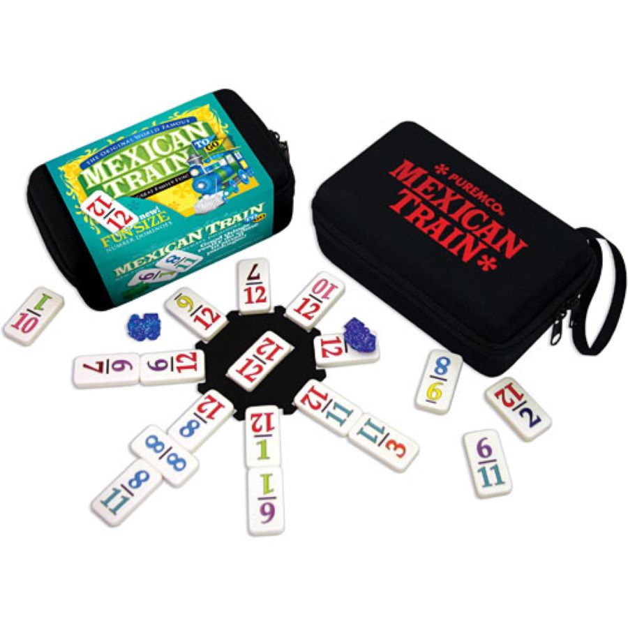 One of the Most Popular Domino Games Today! Mexican Train To Go dominoes take up less space on your table and allow more room for snacking and sipping! The new Fun Size tiles are high-quality, made to stand-up like regular size dominoes and handle well fo