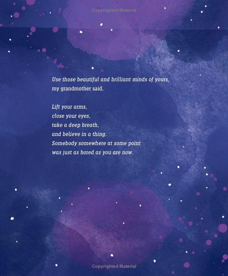 On a dreary, stuck-inside kind of day, a brother and sister heed their grandmother’s advice: “Use those beautiful and brilliant minds of yours. Lift your arms, close your eyes, take a deep breath, and believe in a thing. Somebody somewhere at some point was just as bored you are now.” And before they know it, their imaginations lift them up and out of their boredom. Then, on a day full of quarrels, it’s time for a trip outside their minds again, and they are able to leave their anger behind. This precious skill, their grandmother tells them, harkens back to the days long before they were born, when their ancestors showed the world the strength and resilience of their beautiful and brilliant minds. Jacqueline Woodson’s lyrical text and Rafael Lopez’s dazzling art celebrate the extraordinary ability to lift ourselves up and imagine a better world.