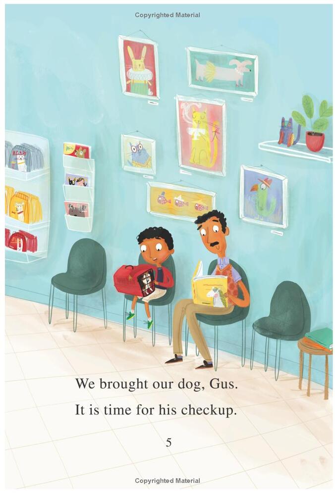 Veterinarians help sick and hurt animals feel better. Did you know that there are many different ways to be a veterinarian? When a father and child bring Gus the dog to his check-up, they learn that there are vets who work with very large animals, vets who work with wild animals--and more.