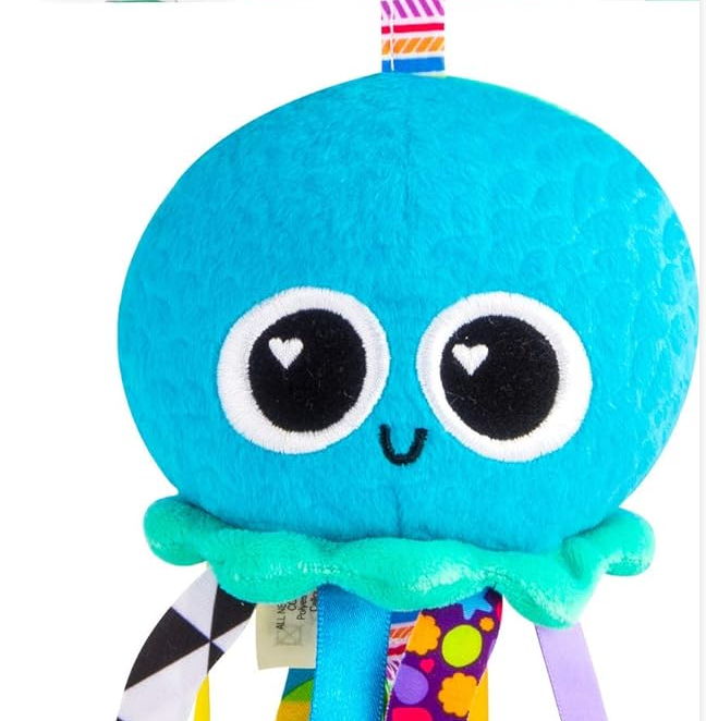 Encourage early development of your baby from day 1 with Sprinkles the Jellyfish! A custom designed teddy bear- like, soft, infant toy that will make your little one entertained and happy. Sprinkles comes packed with baby-safe features to become your baby's best companion to play and discover. Its black and white high contrast patterns, the squeaker, knotties and other features will give your little one a vast range of textures, shapes and colours to play and experiment with. All these features are an excellent support for your newborn's hand to eye co-ordination development and sensory stimulation, as well as imaginative play. Its friendly design and daffy smile will make your baby's eyes light up every time they see it. Clip this baby toy to a buggy, pram, or car seat to keep the little one entertained while shopping or travelling as Sprinkles is soft, has no-harmful areas or surfaces and contains no parts small enough to be ingested. Sprinkles makes an ideal gift for a baby shower party or newborn's first Christmas - give the gift of learning and early discovery!