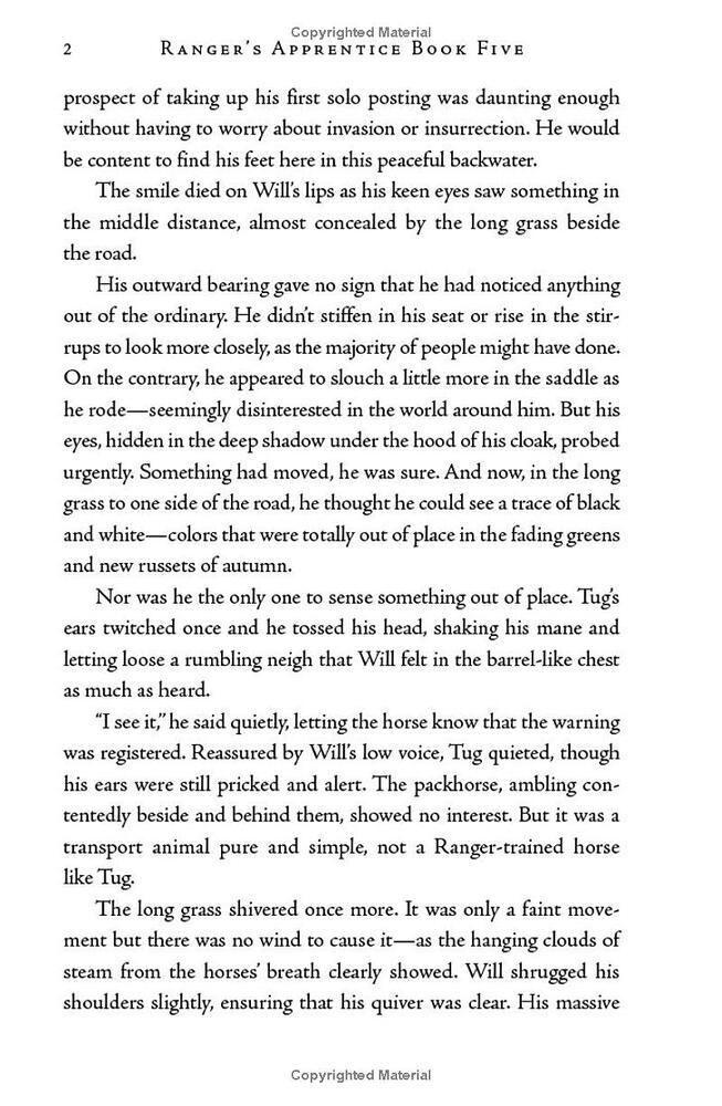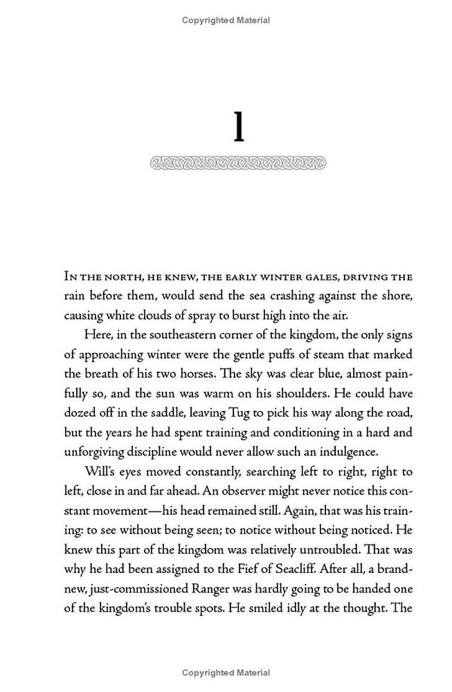 Several years have passed since the apprentice and his master, Will and Halt, first met, and Will is finally a full-fledged Ranger with his own fief to look after. The fief seems sleepy?boring, even?until Lord Syron, master of a castle far in the north, is struck down by a mysterious illness. Joined by his friend Alyss, Will is suddenly thrown headfirst into an extraordinary adventure, investigating fears of sorcery and trying to determine who is loyal to Lord Syron. As Will battles growing hysteria, traitors, and most of all, time, Alyss is taken hostage, and Will is forced to make a desperate choice between his mission and his friend.