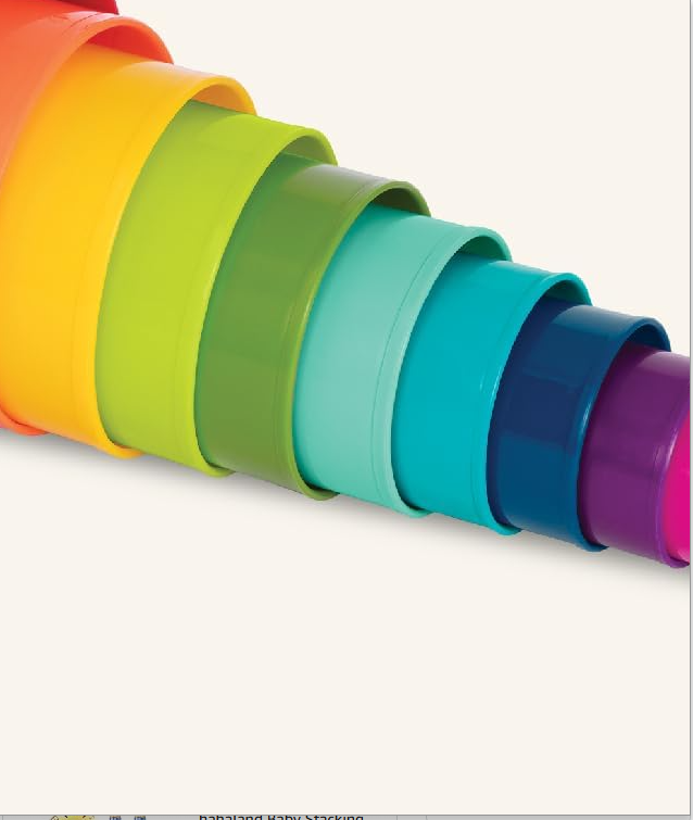 Includes: 9 multicolored stacking cups and 1 bucket with a handy handle that holds them all.