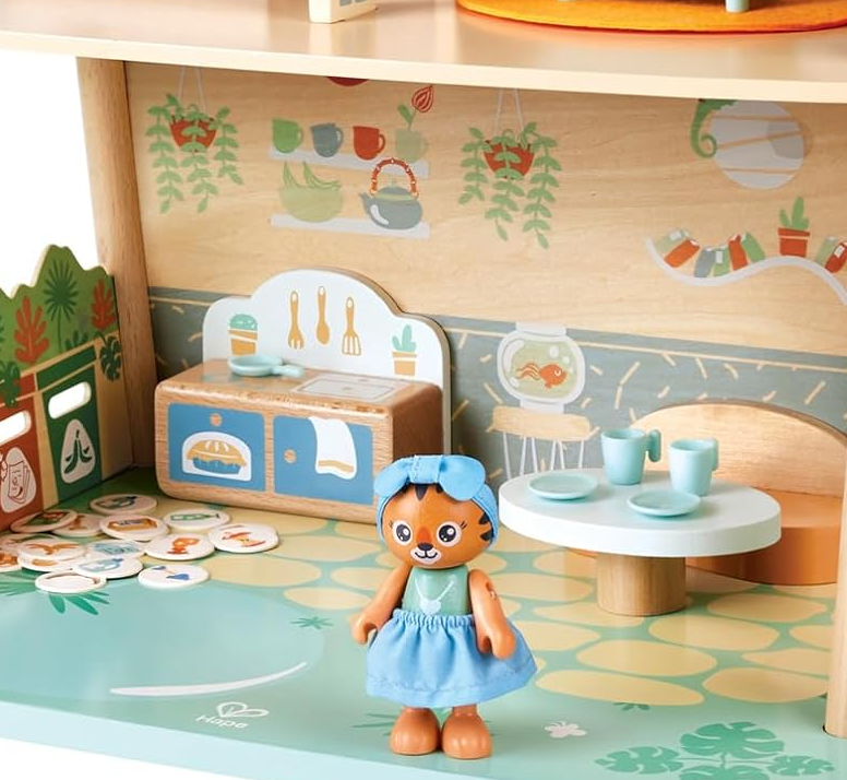 The eco-friendly jungle house and its two tigers is a great way to introduce children to sustainable living. Encourage them to imagine ways of protecting the natural world for future generations.