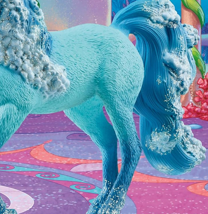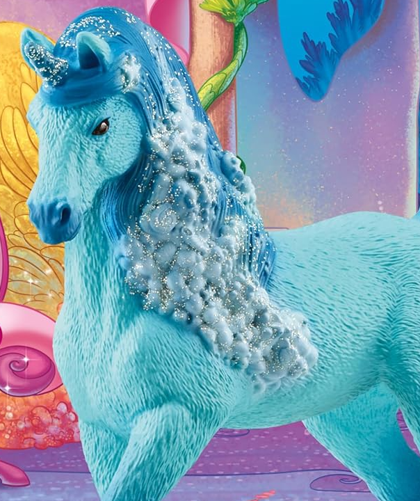 Her pearly blue coat shines like water from the ocean’s depths. Her glittering blue tail mirrors the splash of a waterfall. The sparkles in her mane are sunlight on the waves. The Elementa Water Unicorn Mare is one of three new Elementa unicorns released by schleich® in early 2023.